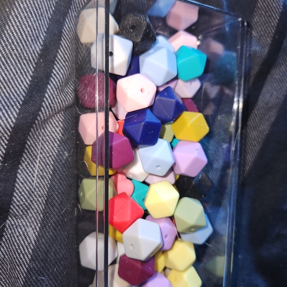 Set of vibrant geometric beads in various colors. Perfect for creative projects.