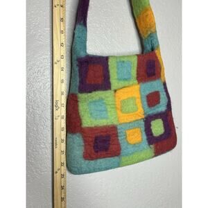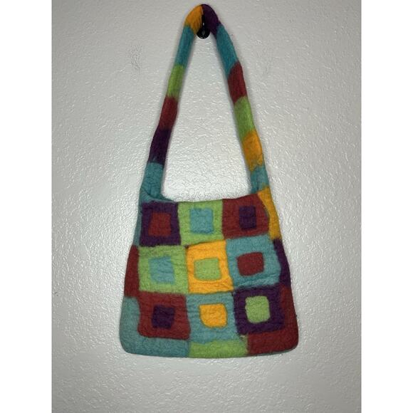 Colorful Geometric Hand Felted Wool Handbag Funky Artsy Hippie