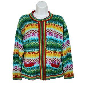 Colorful Geometric Knit Zip Up Cardigan Sweater Multicolor Rainbow Boho Small XS