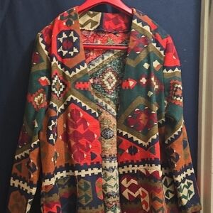 Stand out with this vibrant blazer featuring a bold geometric pattern. Perfect for adding a pop of color to any outfit.