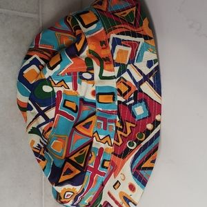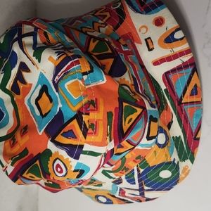 Stand out with this vibrant bucket hat featuring a colorful geometric pattern. Perfect for adding a pop of color to any outfit.