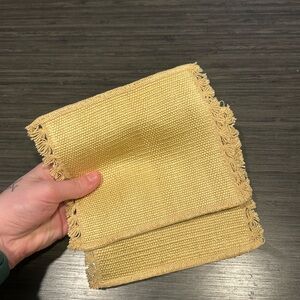 Set of two coasters with vibrant geometric patterns. Features red, orange, yellow, and teal colors. Perfect for adding a pop of color to your table.