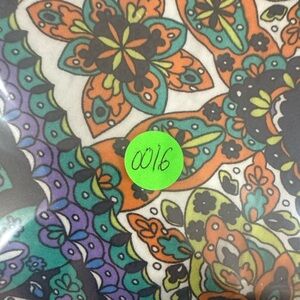 Vibrant pants with a geometric pattern. Features shades of blue, green, and orange.