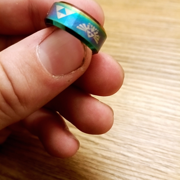 Legend of Zelda ring. Add a pop of color to your outfit with this vibrant geometric pattern ring. Perfect for any retro game lovers.