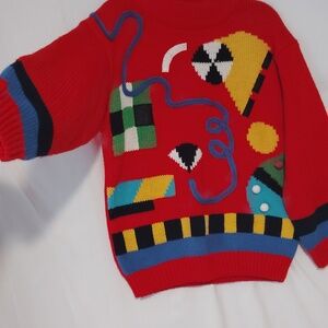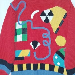 Vibrant sweater featuring a bold geometric design. Perfect for adding a pop of color to your wardrobe.