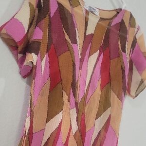 Gorgeous colors geometric pattern; pink, brown, and neutrals. Great vintage condition. E K Designs