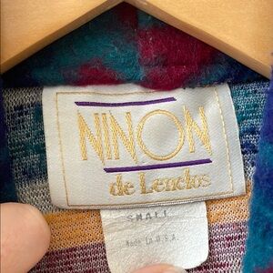 Vibrant jacket with geometric patterns in blue, red, and yellow. Perfect for adding a pop of color to your outfit. Bought at a vintage store in Joshua tree!! Has small shoulder pads attached inside.