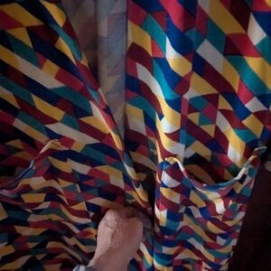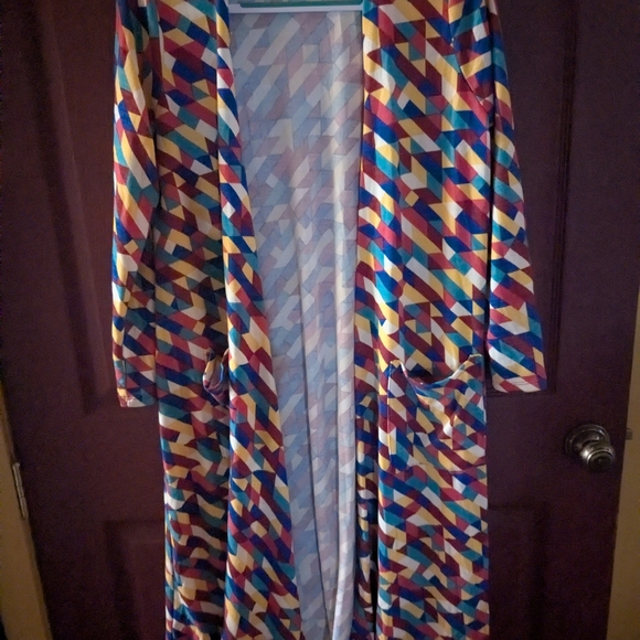 Lularoe Vibrant long cardigan with a geometric pattern. Features a mix of colors for a bold look. NWOT