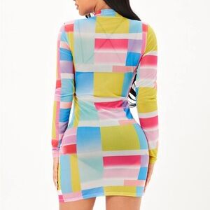 Colorful Geometric Patterned Mesh Dress