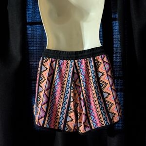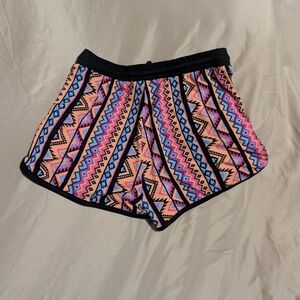 Vibrant shorts with a geometric pattern. Features shades of orange, pink, and blue. Perfect for a bold look.