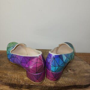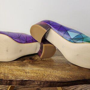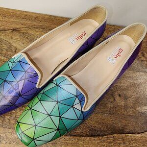 Step into a world of vibrant colors and geometric artistry with these Goby flats. Each step unveils a rainbow of hues, merging seamlessly from green to purple. Crafted with care in Turkey, they promise both comfort and a unique style statement for every occasion.