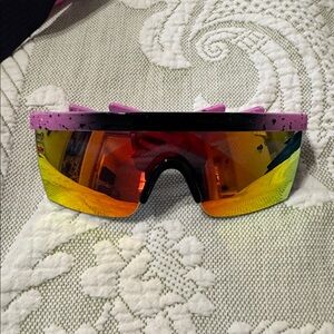 Vibrant tracksuit with geometric patterns. Features bright colors for a bold look. Used for a couple hours for a 80s themed party. Size medium, Fits more like a small.