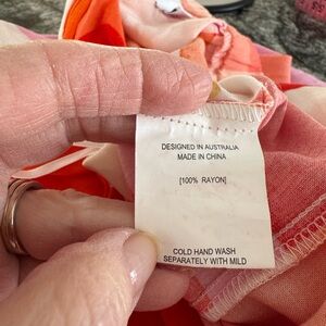 Brighten your wardrobe with this vibrant geometric skirt. Perfect for any occasion, this skirt features a stunning mix of red, pink, and cream colors. Enjoy a stylish and comfortable fit.