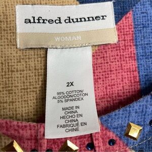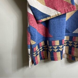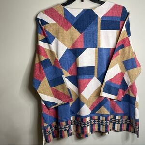 Add a splash of color to your wardrobe with this vibrant geometric top featuring flattering side slits. Perfect for any casual outing. Very soft material. EUC.