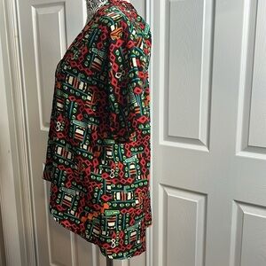 Vibrant women's top featuring a colorful geometric pattern. Perfect for adding a pop of color to your wardrobe.
