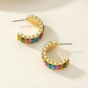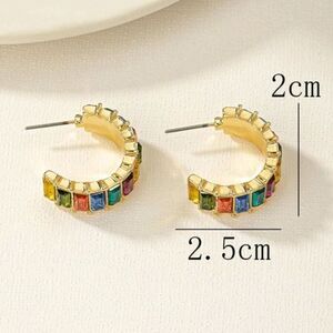 Colorful Geometric C-Shaped Rhinestone Hoop Earrings