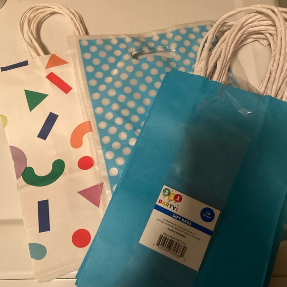 5 white bags with design, 10 polka dot and 10 blue bags all New