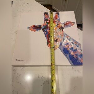 Colorful Giraffe Painting Print on Wrapped Canvas Pure White Background. Signed by artist.