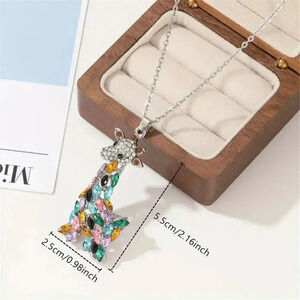 Colorful Giraffe Pendant Rhinestone Silvertoned Necklace