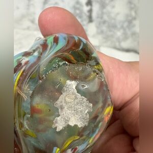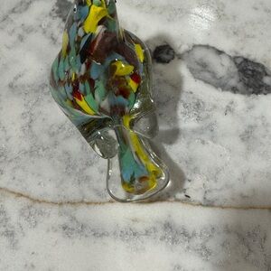 Vibrant glass bird figurine with a mix of colors. Perfect for home decor. Couple nicks on the bottom, but otherwise in great condition. Please look at photos carefully