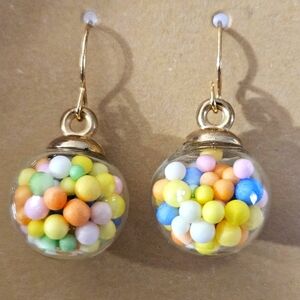 Add a playful touch to your look with these colorful beaded earrings. A whimsical play on a gumball machine, the bowl is glass, and it's filled with "gum ball" colorful beads. Perfect for any occasion.
