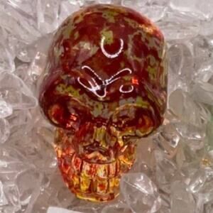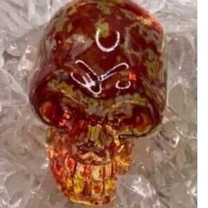 Pretty, cool glass mini skull! Colored glass skull that look cool on it's own, but could be place over a light to bring out the colors. Skull is approximately 1".