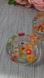 A lovely pair of glass votive candle holders featuring a vibrant geometric design. Perfect for adding a pop of color to your table setting.