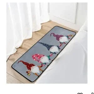Vibrant rug featuring playful gnomes with polka dot hats. Perfect for adding a whimsical touch to any space.