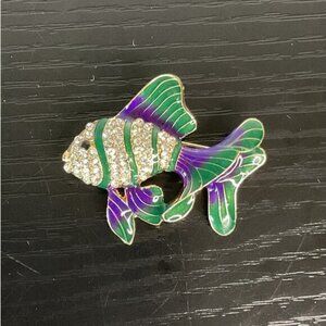Colorful GoldFish Brooch With Rhinestones & Gold-Tone Backing