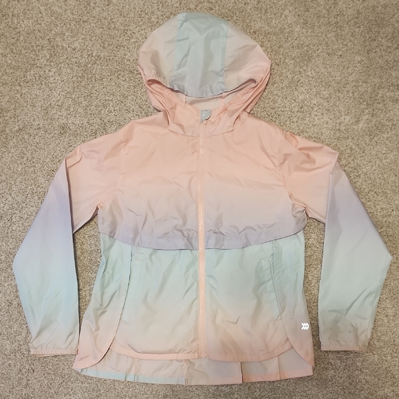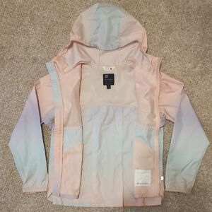 Super cute girls raincoat! Features a front zipper, side pockets, and a hood. Water and wind resistant! Can fold up and pack easily as well!
