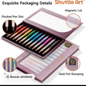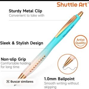 Shuttle Art Ballpoint Pens, 12 Pack Retractable Black Ink Ball Point Pens, Cute Pens 1.0mm Medium Point Waterproof Elegant Gift Set for Writing Journaling Note Taking School Office Home