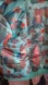 Vibrant bomber jacket with unique graphic design. Features a teal base with multicolor accents.