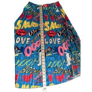 Express yourself with this vibrant, eye-catching skirt featuring bold graphic prints and a comfortable elastic waistband. Perfect to stand out from the crowd. In great condition. No Size Label. Please see measurements.