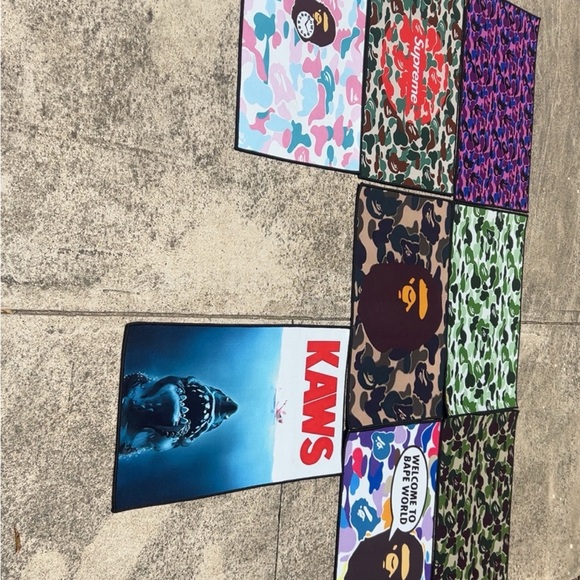 Set of vibrant graphic rugs featuring various designs and colors. Perfect for adding a pop of color to any space. Custom Rugs for sale‼️ Running a buy 2️⃣ for 50💲serious inquiries only pls🙏🏾