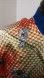 Colorful Green and Orange Scarf with Dynamic Pattern and Ruffled Edges