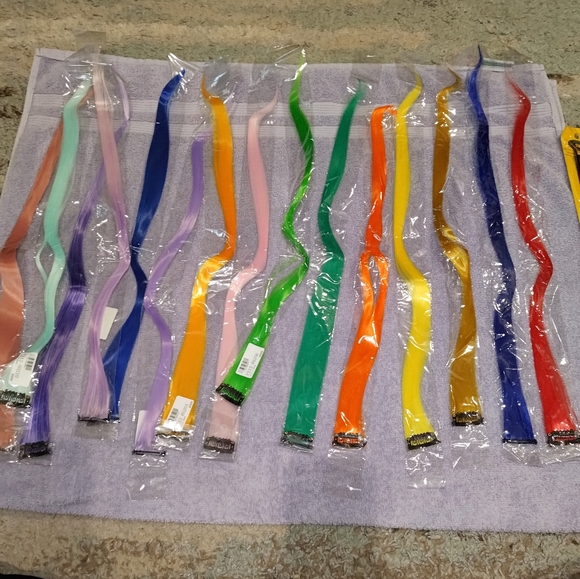 15 color clip ins plus mix Set see second picture and comb set. All New in packaging Set of vibrant hair extensions in multiple colors. Perfect for adding a pop of color to your style.