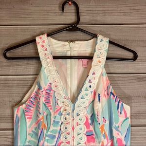 Vibrant and stylish, this halter neck dress features a playful mix of colors. Perfect for any occasion, it offers a flattering fit and eye-catching design.