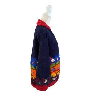 Colorful Hand Knit Wool Blend Cardigan Sweater Women’s Size Large w/ Pockets