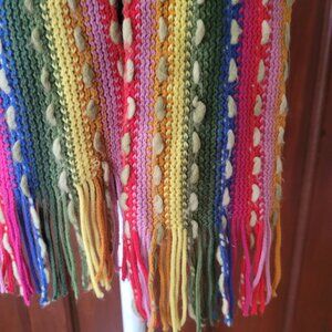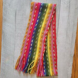 Colorful Hand-Knitted Scarf With Fringe Ends
