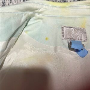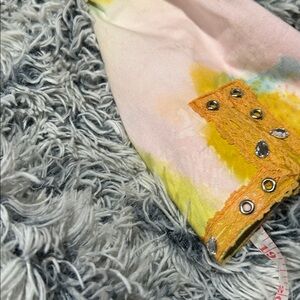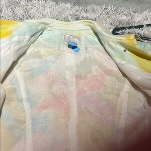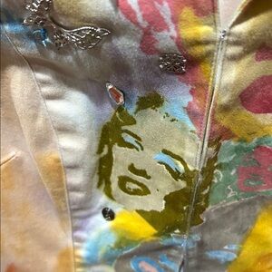 Marilyn Monroe hook and eye closure like new .Vibrant hand-painted jacket with unique artistic designs. Features a mix of colors including blue, yellow, pink, and green.