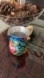Vibrant hand-painted metal pitcher with a unique design. Features a rope-wrapped handle for a rustic touch. Perfect for adding a splash of color to any space.