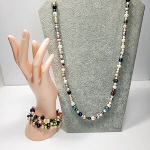 Colorful Handmade Baroque Pearl Necklace and Bracelet Statement Jewelry