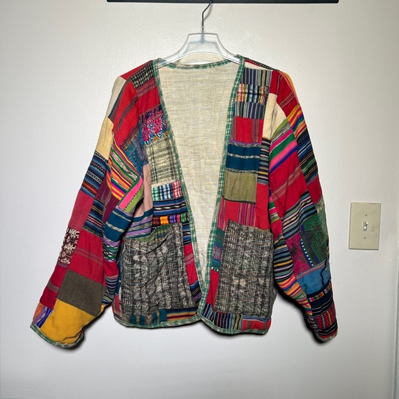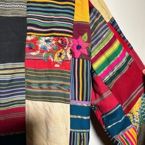 Vibrant handmade patchwork jacket featuring a mix of colors for a vibe that’s out of this world. Has a few stitching issues. Not in perfect condition.
