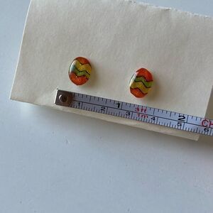 Add a pop of color to your outfit with these vibrant homemade Easter egg zigzag stud earrings. Perfect for spring and Easter time celebrations! Small stud earrings. Open to offers!