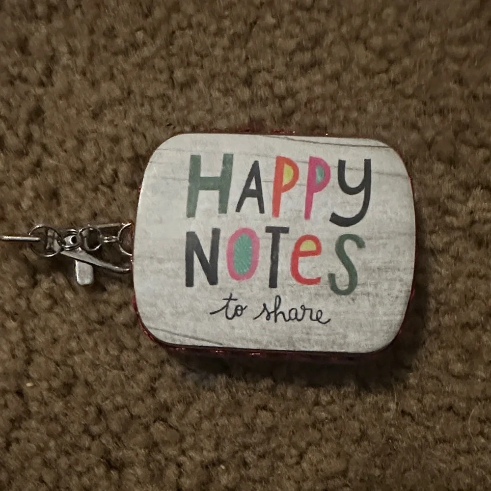 A vibrant keychain with 'Happy Notes' text. Features multiple colors for a cheerful look.