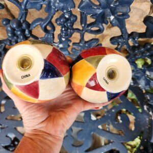 Colorful Harlequin Hand-Painted Salt & Pepper Shakers With Matching Tray