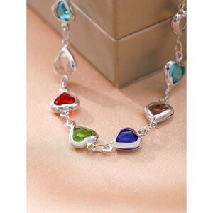 Colorful Cubic Zirconia Heart Design SilverTone Bracelet, Suitable For Women's Daily Wear