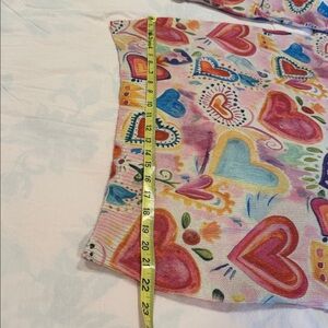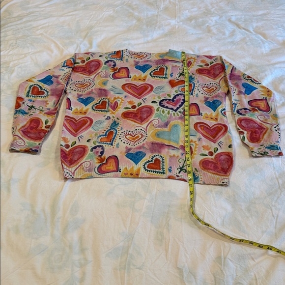 Vibrant sweater with heart patterns in multiple colors. Perfect for adding a pop of color to your wardrobe.