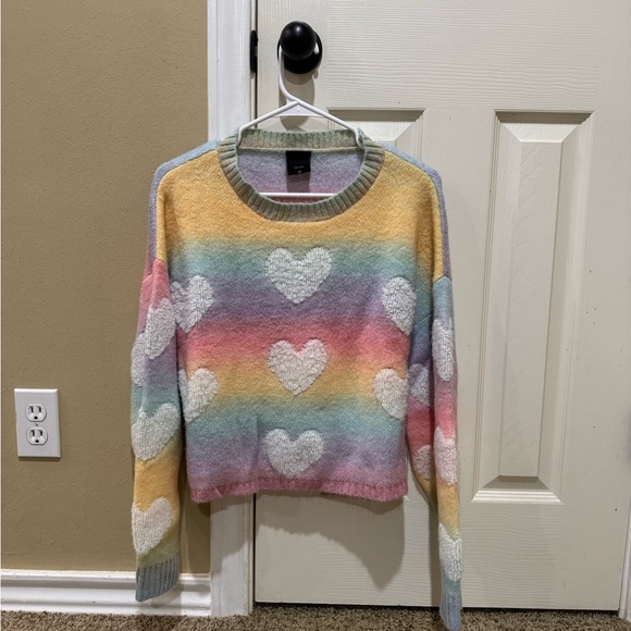 Embrace vibrant style with this colorful heart pattern sweater. Perfect for adding a playful touch to your wardrobe.