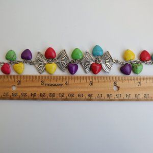 Colorful Hearts Bracelet and Earrings Set with Fan Charms, Handmade Jewelry Set